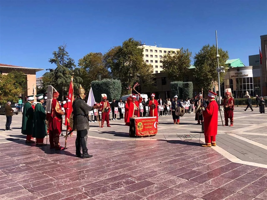Hemen ardından saat 17.30’da Yediler Parkı’ndan başlayan mehteran gösterisi eşliğinde Odunpazarı ve Tepebaşı ilçelerinde bulunan liselerden öğrencilerin katılımıyla devam eden ve Valilik Meydanı’nda son bulan esnaf yürüyüşüne coşkulu bir katılım sağlandı. 18.00’de yine Valilik Meydanı’nda ahilik aşı ikramı yapıldı.