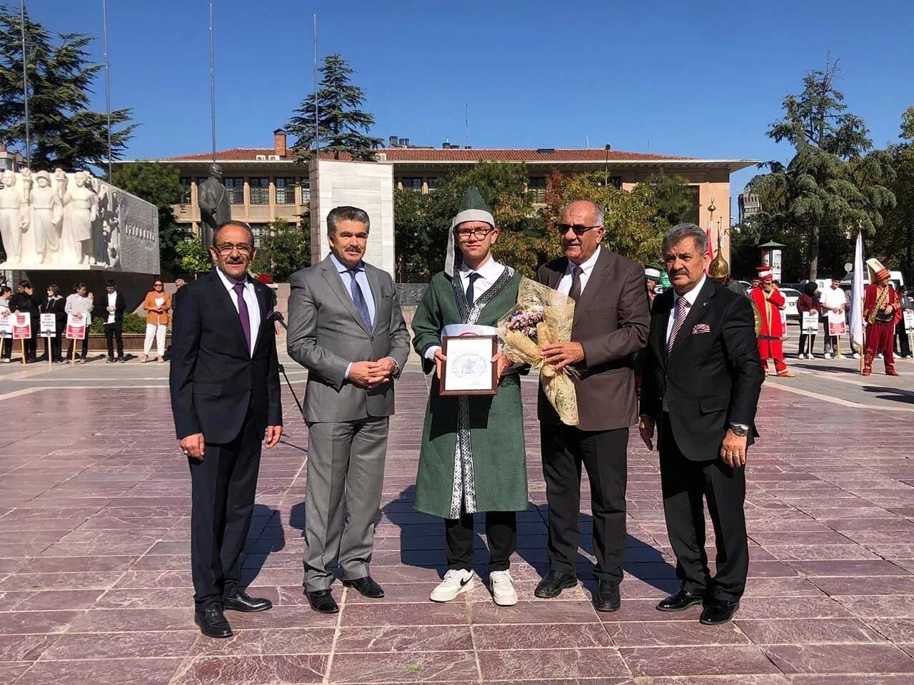 İlin Ahisi, İlin Kalfası, İlin Çırağı seçilen kişilere şed kuşatma ve giydirme töreni yapıldı. Sayın Valimiz Hüseyin Aksoy, Kutlama Komitesi Başkanı Vali Yardımcısı Remzi Oğuz Yılmaz, Odunpazarı Kaymakamı Ömer Ulu, Tepebaşı Kaymakamı Sadettin Yücel, İl Müdürümüz Cemil Kürkçü, Esnaf ve Sanatkârlar Odaları Birlik Başkanı Ekrem Birsen tarafından İlin Ahisi ödülü ayakkabı tamirciliği yapan Enbiya Akyol’a, İlin Kalfası ödülü elektrik tesisatçılığı yapan Yasin Albayrak’a, İlin Çırağı ödülü ise moda tasarım ve terzilik mesleğini yapan Begüm Baysak’a takdim edildi.