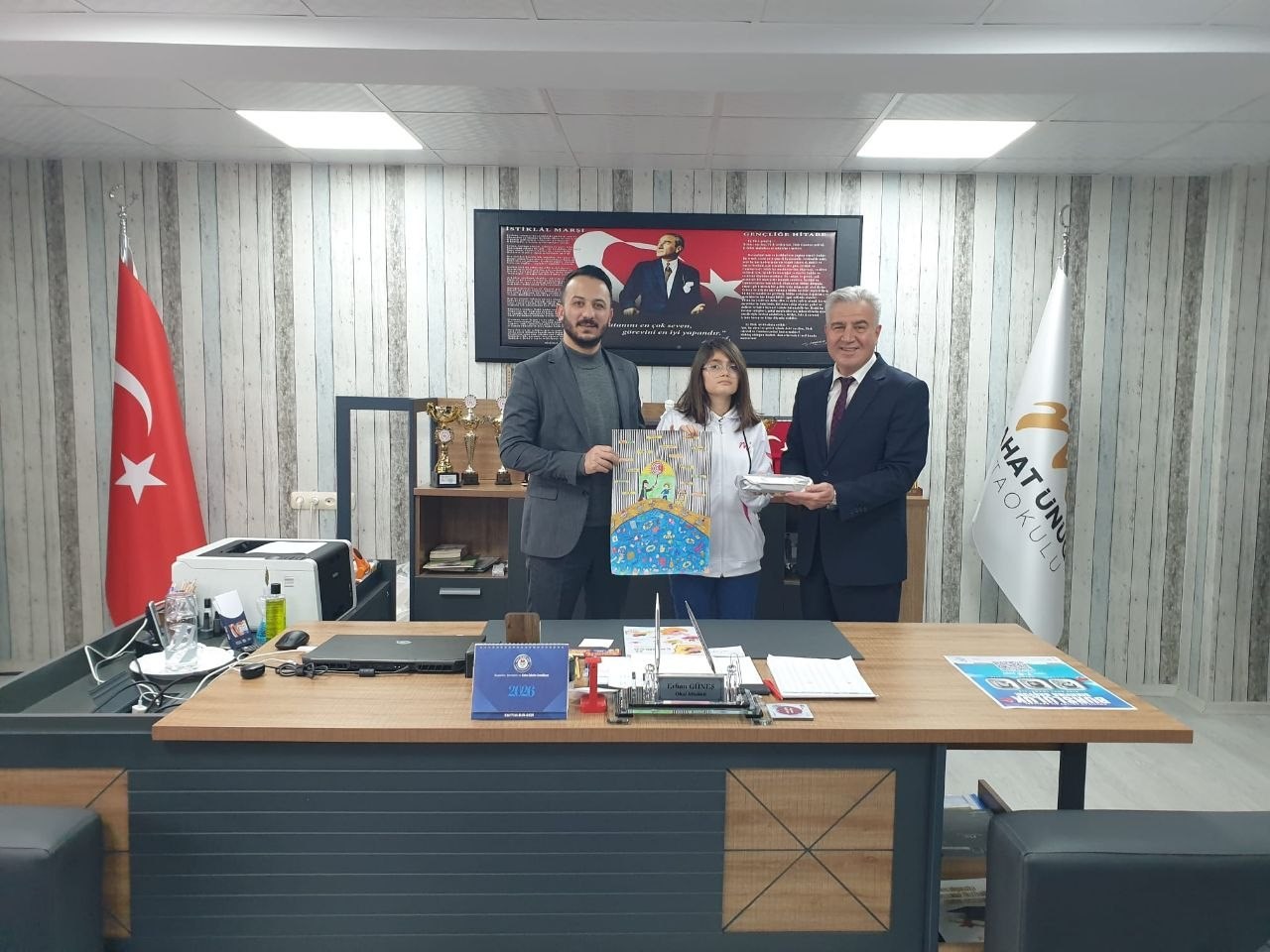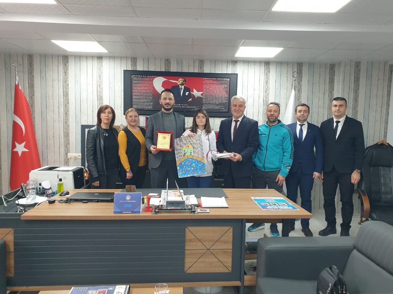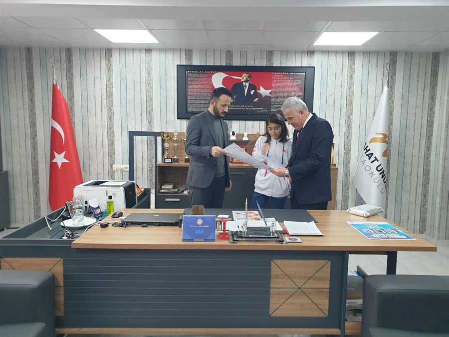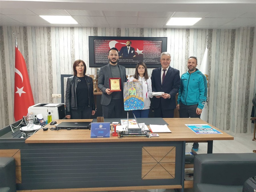 Ayrıca, İl Müdürümüz tarafından resim yarışmasında ilimizde birinci olan Melahat Ünügür Ortaokulu öğrencisi Rozerin Su Baran'a hediyesi verildi.